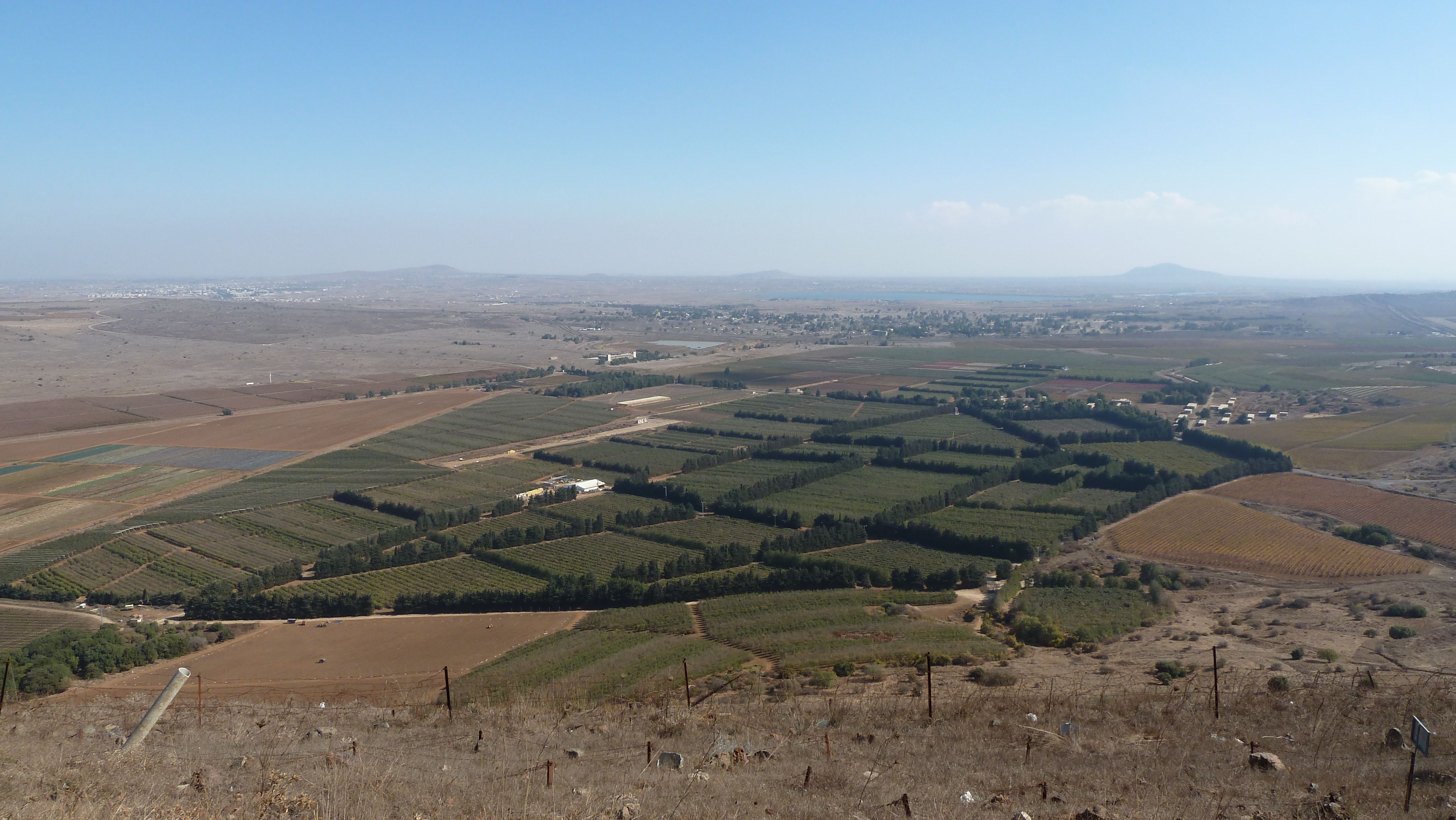 Vinmarker på Golanhøyden, bostavelig talt på grensen til Syria. De hvite bygningene til høyre er brakker for FN-personell som overvåker den demilitariserte sonen.